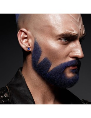 Piercing pour le lobe de l'oreille, en acier chirurgical 316L, aspect faux plug, représentant un oeil bleu.