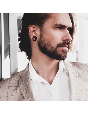 Piercing tunnel pour le lobe de l'oreille, en agate noire.
