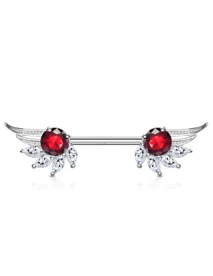Piercing barbell, pour le téton, serti de 10 cristaux.