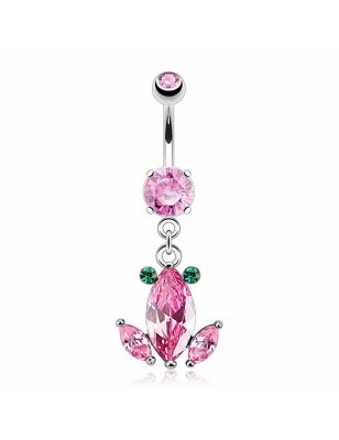 Piercing de type barbell, pour le téton, en acier chirurgical 316L, avec embouts sertis chacun de cinq cristaux de couleur rose.
