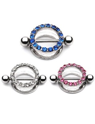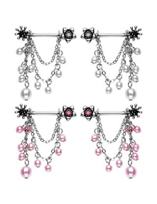 Piercing de type barbell en acier chirurgical, pour le téton, avec un bouclier en forme de dragon.