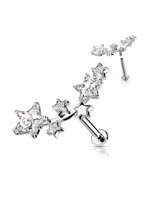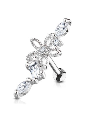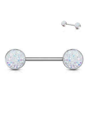 Piercing de type barbell, pour le téton, en acier chirurgical 316L, avec embouts représentant des coeurs pavés de petites pierres en zirconium blanc entremêlés au symbole infini .