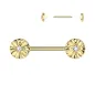 Piercing pour le téton, en acier chirurgical 316L plaqué de couleur dorée, avec embouts représentant un motif celtique serti d'une pierre en zirconium blanc.