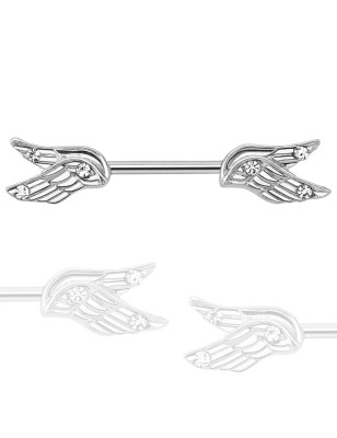 Piercing pour le téton en acier chirurgical 316L, serti de deux rangées de strass.