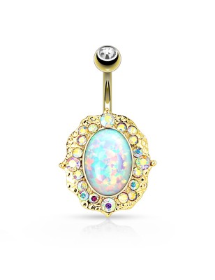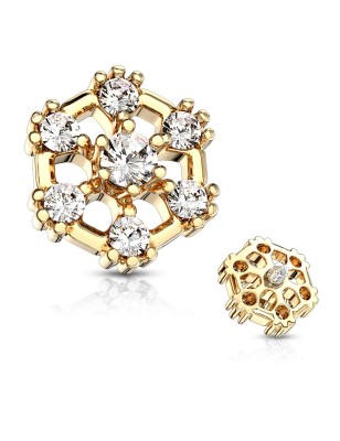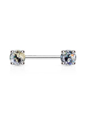 Piercing pour le téton en acier chirurgical plaqué or rose, serti de deux pierres en forme de coeurs.