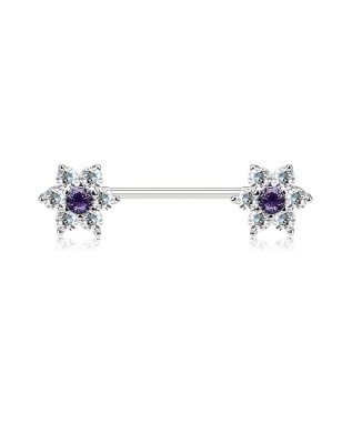 Piercing barbell, pour le téton, représentant deux fleurs.