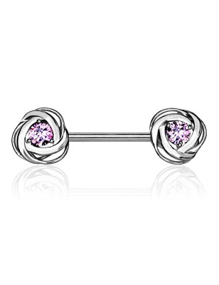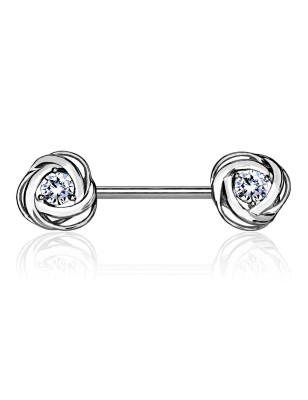 Piercing de type barbell pour le téton, en acier chirurgical 316L, plaqué or, représentant deux roses en guise de fermoirs, chacune sertie d'une pierre en zirconium blanc.
