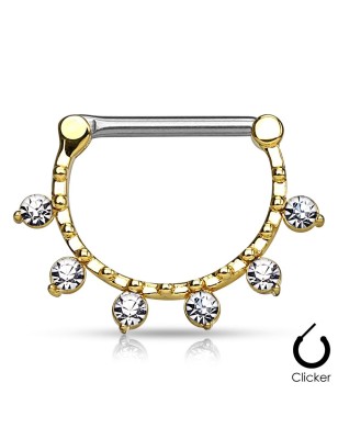 Piercing de type barbell, pour le téton, en acier chirurgical 316L, avec deux embouts serti d'une pierre en zirconium rouge en forme de coeur, surplombée d'une couronne plaqué or 14K.